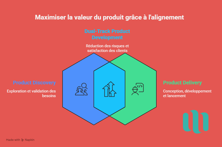 Les meilleures équipes produit adoptent une approche dite dual-track, où la recherche et l’exécution se nourrissent mutuellement. Cette articulation permet de réduire les risques : on évite de livrer des fonctionnalités inutiles et on s’assure que le produit final répond vraiment aux attentes des clients.